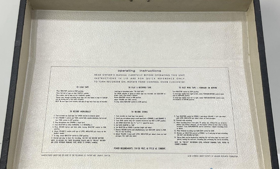 The Audio Recorder/Player Database Posted onSeptember 12, 2025December 12, 2025AuthorDave Morton Manufacturer: Argus, Inc. (Argus)Model: 800 Type: tapePlace of origin: Chicago, Illinois, USADate of manufacture: Circa 1960 Recorder Manufacturers Philips (Koninklijke Philips);ST-459 3M (Minnesota Mining and Manufacturing Co.);525 94BG Cantata 3M-Revere (Revere Camera Co., div. of 3M);1580 3M-Wollensak (Wollensak Div. of 3M Company);2551-AV 4060 4780 6024-AV 6250-AV T1400 T1500 T1908 ACA (Amplifier Corp. of America);Dictascriber ACEC (Ateliers de Constructions Electriques de Charleroi);Dictorel 2420 Acme (Acme);1500 Acoustiphone (Acoustiphone Corporation);900 Acousti-corder Acousti-player 700 AEG (Allgemeine Elektricitäts-Gesellschaft AG);Kleine Magnetophon KL-15 Magnetophon 104 Magnetophon 70 Magnetophon 75 Magnetophon 76 Magnetophon K-7 Afco (Afco Elec tronics);Executive AGA (AGA AB);Agavox 2 Agavox C unknown Air Castle (Spiegel Inc.);603.880 795.880 Unknown Air Castle (Spiegel, Inc.);603.880 795.880 Unknown Air King (Air King Products Co.);A-750 Aiwa (Aiwa Co., Ltd.);TP-179 TP-31 Akai (Akai Electric Co., Ltd.);1800SD CSM-3 GX-18104 GX-230D GX-280 DSS GX-747 GXC-46D GXC-760D GXC-760D X-150D X-1800SD X-1810 XEA-15 Adapter Allied (Allied Radio Corp.);1099 American Audio (ADJ Products, LLC );Unknown American Telegraphone (American Telegraphone Co.);Early wire recorder Telegraphone Answering Machine Ampex (Ampex Corp.);1461 612 800 9006 934 936 936 ATR-700 AX-50 HCR-8 Micro 9A unknown (data recording system) Ampro (Ampro Corporation);730 731 7318 739 745 755/756 757 AndyGard (General Molds and Plastics Corp.);900 Home Recorder Anritsu (Anritsu Electric Corporation);Wire recorder Ansaphone (Ansaphone Corp.);KH-85F KH-85F KH-85F unknown Apolec (Apollo Electric Industries);RA11 Argus (Argus, Inc.);800 800 Arion (Arion Corporation);Ar-tik' 414 Armour Research (Armour Research Foundation);51 Arvin (Arvin (brand of Noblitt-Sparks Industries, Inc.));85L08 86L48A3 Arvin (Arvin Industries, Inc);85L08 86L48A3 Assman (Wolfgang Assman GmbH);640 Astatic (Astatic Corp.);Mirraphone ATC (Automatic Tape Control);Cartridge player Audio Applications (Audio Applications, Inc.);Voice-Master Audio Devices (Audio Devices);1-mil audio tape Audio Tutorial (Audio Tutorial (Div. of Burgess Publishing Co.));SC-1 Audio-Phonic (Gem Color Co., Inc.);Audio-Phonic AudiOfax (AudiOfax Corporation);AudiOfax Audiomatic (Continental Iambic Inc.);A-900 A-900 Audiotronics (Audiotronics Corp.);110 110 Automatic Radio (Automatic Radio Manufacturing Co.);STP(?)-4499 Bang & Olufsen (Bang & Olufsen A/S);B506k Bel Air (Bel Air);394 Bell (Bell Sound Systems Inc.); RT-65 Re-Cordo-Fone 400 Series BT2051B RT-204 RT-65 Re-Cordo-Fone RT-75 T-238 T-300 Series T200-210 Bell & Howell (Bell & Howell Co.); 785 300 Series 3081B 600 Series 770 770 785 Filmosound Belle Wood (Belle Wood);8000 Bellsouth (Bellsouth LLC);1191C Benkson (Benkert Benkson Ltd.);HIL-3 Berlant (Berlant Associates, Inc.);BR-1 Berlant Concertone (Columbia Records, Inc.);770 TR-100 Unknown Berlant Concertone (Concertone, Inc.);770 TR-100 Unknown Berliner (Berliner Gramophone Co.);unknown Bigston (Kyokuyo Electric Co. Ltd.);BR-600 Blaupunkt (Blaupunkt Werke GMBH, subsidiary of Robert Bosch Group);CR-4095 Bon Sonic (Bon Sonic);MC-711 Boosey Hawkes (Boosey & Hawkes Ltd.);unknown Bradford (W.T. Grant Co.);WTG-60178 Brennell (Brenell Engineering Co., Ltd. );Mk 5 Brush Development Co. (Brush Development Company);BK-303 BK-401 BK-403 BK-411 BK-416 BK-503 Mail-A-Voice BK-503 Mail-A-Voice Butoba (Schwarzw lder Uhrwerkefabrik Burger KG);Export/TPR2 MT-5 TS-61 Butoba (Schwarzwälder Uhrwerkefabrik Burger KG);Export/TPR2 MT-5 TS-61 C. Lorenz (C. Lorenz AG);Textophon Califone (Califone International, Inc.);5272AV Capehart (Capehart Automatic Phonograph Corp.);Unknown (early record changer) Unknown (early record changer) Carraday Haiat (Carraday Haiat Ltd.);15-206 TP-723 Carryola (Carryola Company of America);Unknown (record changer) Challen (Challen Instrument Co.);Minivox Channel Master (Channel Master Corp.);6545 Small Talk Cipher (Inter-Mark Corp.);1 Citroen (Citroen Electronics Corp.);66012 Clarion (Clarion Sound Engineering Co.);Model A Coby (Coby Electronics Corporation);CV-LR930 Digital Language Repeater Code-A-Phone (Code-A-Phone Corp.);1750 unknown Code-A-Phone (Ford Industries, Inc.);1750 unknown Cole (Cole Mfg. Co.);Cole-Vanguard Dictator TR-400 Vanguard Columbia (Columbia Record Co.);461 462 560 C-690TR C-695TR Columbia Bell & Howell (Columbia Records, Inc.);350 366 Columbia Graphophone (Columbia Graphophone Co.);AB Columbia(Japan) (Columbia (Japan));2686 C69-OTR Comptometer (Comptometer brand of Felt and Tarrant Manufacturing Company);Commander Concord (Concord Electronics Corp.);103 107 220-T 555 Continental (Tape Recorders, Inc.); 220 220 Continental Iambic (Continental Iambic Inc.);A-900 Conumep (Conumep);201 Cossor (Cossor AC);C1601 Cousino Electronics (Cousino Electronics Corp.);Audio Vendor cartridge Mag-Matic Craig (Craig Electronics Corp.);2603 2623 3307 PMS-1000 Crescent (Crescent Industries, Inc.);2900 907 E100 Steno unknown Crestwood (Crestwood (brand of Daystrom Electric Corp.));304 400 Series 404 CP-201 Crosley (Crosley Radio Co.);C-33A C-33A Crown (Crown (Brand of International Radio and Electronics Corp.));700 Gold CTR-355 CTW-5950PA Imperial Prince Telephone Valet Crown (Crown Radio Corp.);700 Gold CTR-355 CTW-5950PA Imperial Prince Telephone Valet Daily Meditation (Daily Meditation);Audio Bible Denon (Nippon Columbia);DRR-780 Dictaphone (Dictaphone Corp.);3710 A-2 Special Electricord (Military) Ansaphone 620 Ansaphone 660 Ansaphone 6909 Ansaphone 787 Cameo Cameo - transcriber Electricord K-142 Model 13 (Shaver) Time-Master Time-Master Time-Master model 5 Time-Master model 6 Travel Master Dirt Tapes (Dirt Tapes/Liquida SAS);Tape Roller Dokorder (Dokorder (Brand of Denki Onkyo Co.));7140 8010 Doro (Dictran International Corporation);701 702 Dual (Dual Phono GmbH);C