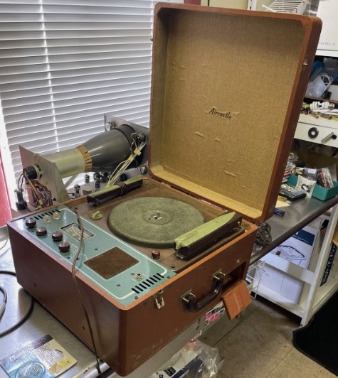 Comments: This link (https://www.lathetrolls.com/viewtopic.php?t=704) claims that the basic mechanical portion is made by General Industries, Inc. Also see this link: https://www.radiomuseum.org/dsp_hersteller_detail.cfm?company_id=3409 which suggests that Spiegel Inc. may be the same company as Continental Radio. Spiegel, Inc. had its headquarters at 1061 W. 36th St., Chicago.