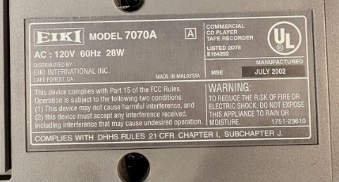 Comments: Eiki\'s US headquarters was in Lake Forest, California in 2002