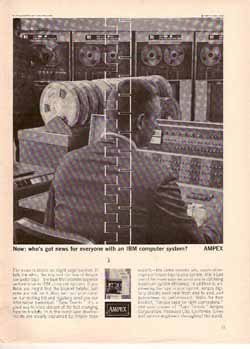 Comments: Ampex entered the analog data recording field as early as 1950 and digital data recording somewhat later. This 1964 ad touted its computer data storage systems.