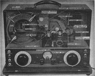Comments: Phonographic recorder that embossed a recording on 35mm cellulose acetate film. Used a continuous loop of film, so that the recording was in effect a long spiral groove around a cylinder.