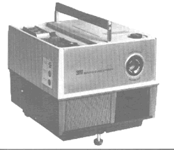 Comments: 3M's proprietary sound slide system. User inserted an ordinary 2x2 slide into a special holder. Holder had a small magnetic disc that held a few seconds of sound.