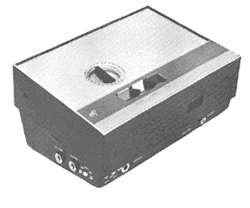 Comments: For the audiovisual education market. Inside is a 3-inch open-reel recorder using 4-track tape. 1 track used as the "drill" track, and students repeated what they heard on the 3 other tracks.